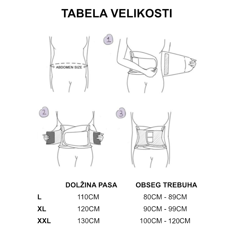 Pas je primeren za uporabo tako pod, kot tudi nad oblačili. S pomočjo pasa ne boste samo izgubljali odvečnih kilogramov, ampak vam bo nudil tudi oporo in tako pomagal pri boljši drži.